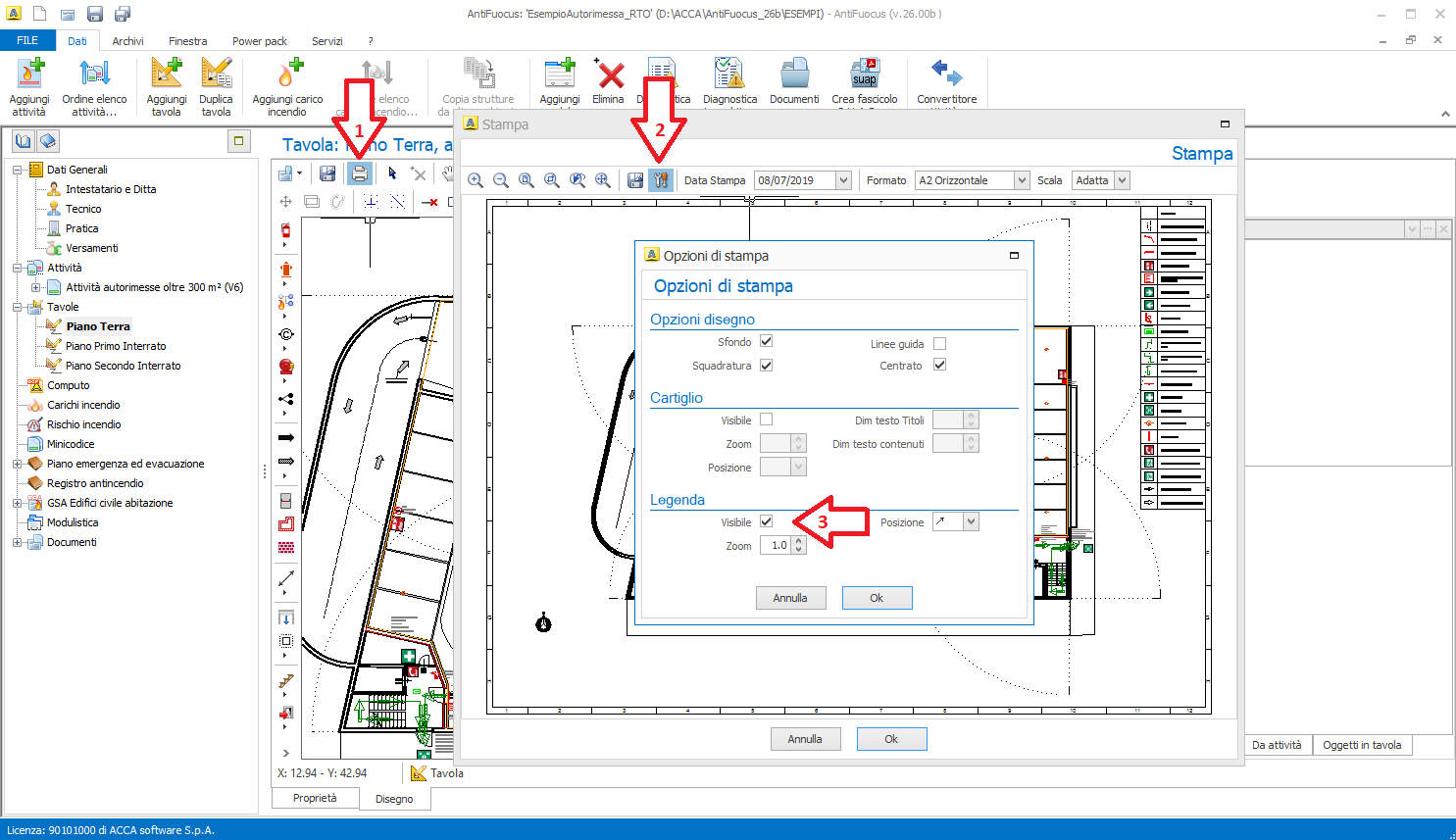 AntonellaDA | AntonellaDA 2024-11-12 14:32:05 Sulle tavole realizzate in AntiFuocus è possibile visualizzare la legenda direttamente nell'anteprima di stampa. A tale scopo, occorre selezionare l'icona con il simbolo della stampante nella toolbar superiore della tavola, a seguire accedere alle opzioni di stampa e inserire il flag in corrispondenza del campo Visibile relativo alla Legenda. |