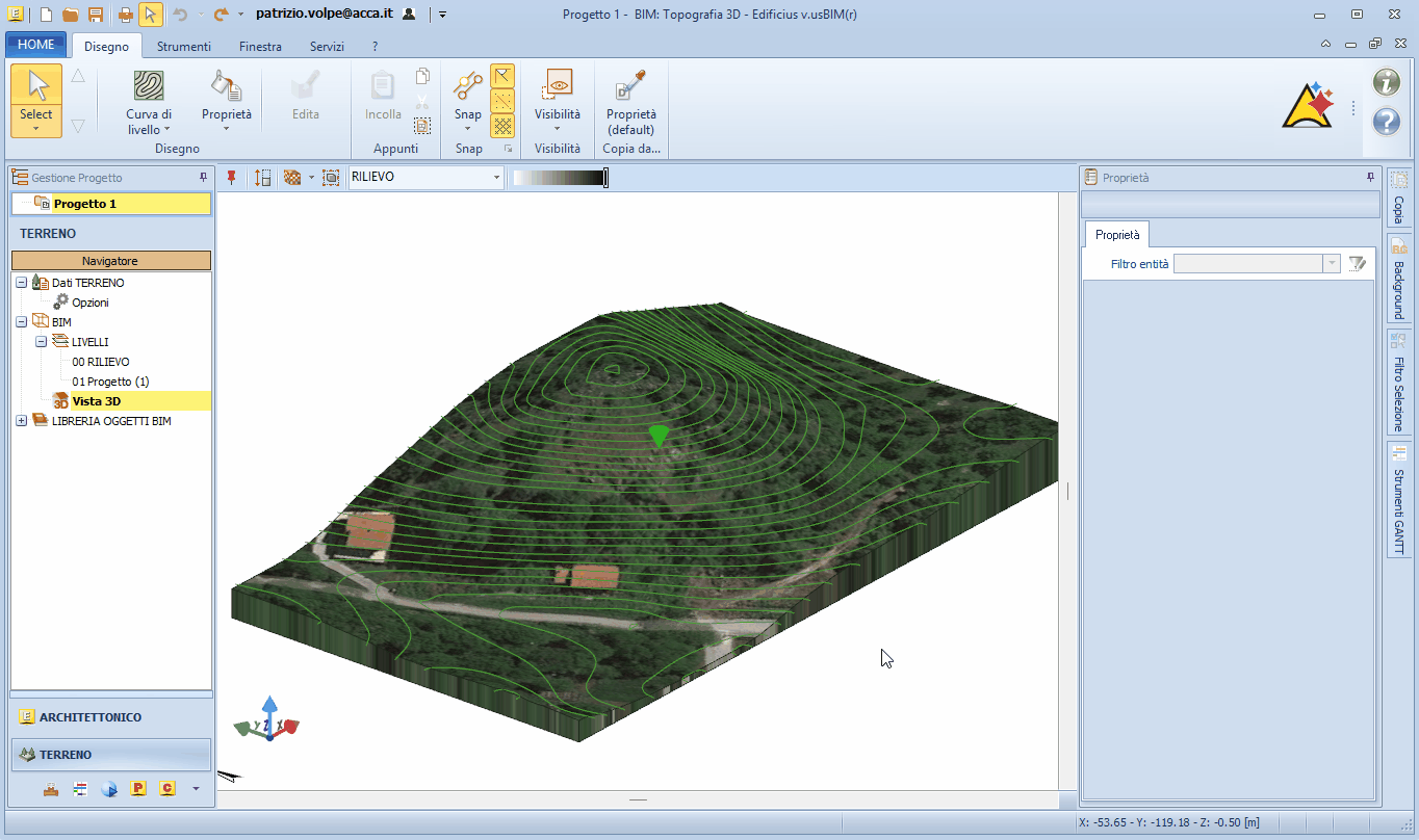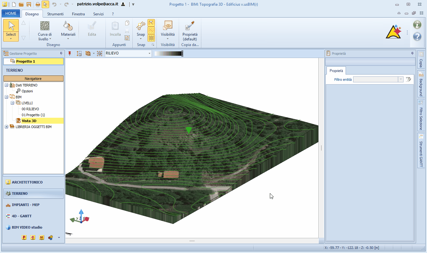 | Terreno da Google Maps: come togliere l'immagine e inserire un materialePatrizio 2025-12-23 10:16:42 Voglio condividere una richiesta di assistenza Richiesta: Ho importato il terreno da Google Maps e come sfondo visualizzo una immagine del terreno importato. Posso togliere questo sfondo e assegnare un materiale al terreno? Risposta: Certo. L'immagine che viene visualizzata altro non è che la texture riferita al materiale "principale" applicato al Terreno. E' quindi possibile editare il materiale e cancellare/sostituire la texture. Se di contro è possibile applicare un differente materiale al terreno. Come eliminare la texture dal materiale - selezionare il "Terreno [origine]" (dalla vista 3D o dal livello); - dal toolbox Proprietà a destra portarsi nella sezione Materiali; - per il campo Principale cliccare il bottone Apre l'editor della LIBRERIA OGGETTI BIM di PROGETTO per apportare le modifiche all'elemento (l'icona è un foglietto con una matitina); - nel lato destro dell'editor, portarsi nella sezione Colore/mappa colore; - cliccare nel campo posto a destra di Texture e selezionare Rimuove l'elemento (l'icona è una gomma per cancellare). Clicca QUI per visualizzare un video. Nota il video seppur registrato con l'interfaccia di Edificius, è ugualmente indicativo delle operazioni da effettuare in quanto sono le medesime da effettuare con CerTus HSBIM. Se in alternativa si intende sostituire la texture con una differente, occorre cliccare sulla freccetta nera e dal menu selezionare Carica da file andando a selezionare una differente texture per questo materiale. Come assegnare un differente materiale al Terreno - stando sulla vista 3D del Terreno; - dalla toolbar selezionare il comando Materiali (l'icona è un secchiello) - sul lato destro si apre usBIM.library - la libreria online del programma; - selezionare il materiale da applicare; - riportarsi sul 3D e con il puntatore del mouse (l'icona ha la forma di un secchiello); - effettuare un clic con il tasto sinistro del mouse per applicare il materiale. Clicca QUI per visualizzare un video. Nota il video seppur registrato con l'interfaccia di Edificius, è ugualmente indicativo delle operazioni da effettuare in quanto sono le medesime da effettuare con CerTus HSBIM. |
