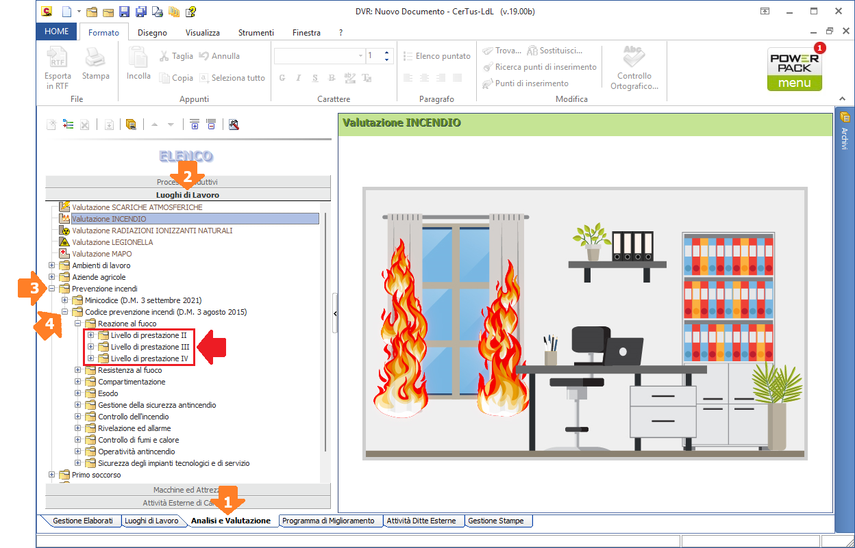 Richiesta Mi trovo nella sezione Luoghi di lavoro della pagina Analisi e Valutazione del documento; siccome sto analizzando un'azienda che, relativamente alla valutazione del rischio Incendio, ricade nella categoria "Codice di prevenzione incendi", sto procedendo a stabilire la Conformità o Non Conformità delle verifiche da eseguire per la sezione "Reazione al fuoco".