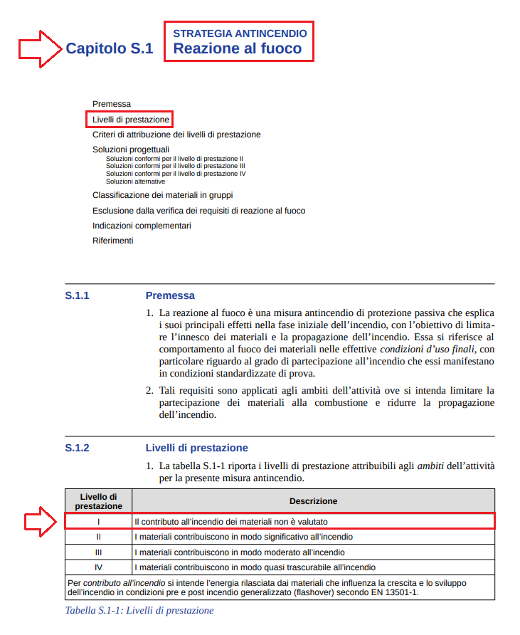 Risposta Il D.M. 3 agosto 2015, nei casi di Codice prevenzione incendi, stabilisce che relativamente alla "Strategia antincendio - REAZIONE AL FUOCO", le soluzioni progettuali da valutare sono esclusivamente quelle per i Livelli II, III e IV (Capitolo S.1). Inoltre, nella tabella indicata al punto S.1.2, viene indicato che per il "Livello di prestazione I" "Il contributo all'incendio dei materiali non è valutato".