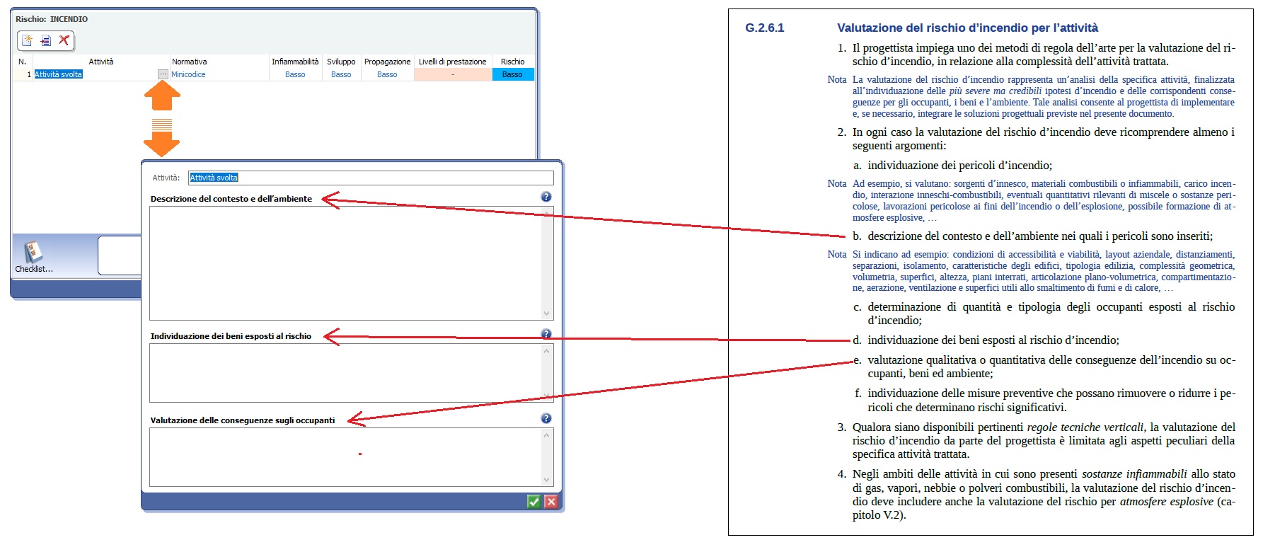 | Giuseppe 2023-11-22 14:31:34 Ho inteso a cosa si riferisce, Le spiego: - Il campo "Livelli di prestazione" si attiva quando in precedenza sono state indicate delle condizioni che fanno ricadere l'attività nella categoria "Attività NON a basso rischio, regolata da Codice Prevenzione incendi" --> clicca qui per vedere un esempio - Relativamente a quanto riportato nella stampa, l'intento principale era quello di riportare i passaggi che si eseguono nel programma per eseguire la valutazione del rischio, ritenendo quanto riportato nel paragrafo subito precedente esaustivo nel far intendere quale normativa viene rispettata per la valutazione del rischio stesso (difatti ad oggi riportiamo anche una lettera in più, la g). Nota: relativamente a questo aspetto ho già segnalato il suggerimento al fine di valutare se modificare l'elenco che si propone oggi, sostituendolo esattamente con i punti elencati dall'allegato. |