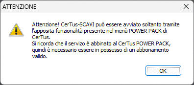 CerTus-SCAVI può essere avviato soltanto tramite l'apposita funzionalità presente nel menù POWER PACK di CerTus