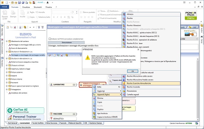 | Scariche Atmosferiche: messaggio "Non è possibile aggiungere il fattore di rischio"Patrizio 2025-03-04 10:21:32 Voglio condividere una richiesta di assistenza Richiesta Sto analizzando le lavorazioni, ma nell'aggiungere il rischio "Scariche Atmosferiche" compare il messaggio ![]() dando l'OK al messaggio, vengo portato nei Dati Generali, ma non comprendo cosa devo fare. Risposta Differentemente da altri rischi normati, quali Rumore, MMC, Vibrazioni, Chimico etc., che derivano dallo svolgimento di una lavorazione e/o dall'utilizzo di un attrezzo o una macchina, il rischio Scariche Atmosferiche è strettamente connesso alla presenza in cantiere di elementi metallici, quali baracche, gru e ponteggi. Questi elementi, se presenti in cantiere, vanno indicati nel nodo "Organizzazione del Cantiere" (nodo dell'editor "Dati Generali"), fornendo informazioni circa la loro ubicazione in cantiere, il loro utilizzo, ma soprattutto, individuando e valutando i rischi a loro connessi, tra cui il rischio Scariche atmosferiche. In conclusione, il messaggio in questione, ci sta indicando che il rischio Scariche Atmosferiche, non derivando dall'uso di un attrezzo e/o una macchina, NON può essere inserito nell'analisi della lavorazione, ma va inserito sotto un elemento dell'Organizzazione del Cantiere. Dando l'OK al messaggio, veniamo portati nell'editor Dati Generali e posizionati automaticamente sul nodo Organizzazione del Cantiere. Occorre quindi aggiungere un sottonodo ex-novo (riferendolo alla gru, la ponteggio o ai baraccamenti) o acquisendolo dall'archivio, per poi procedere alla valutazione del rischio Scariche Atmosferiche. ATTENZIONE Quanto specificato per il rischio Scariche Atmosferiche, vale anche per altre tipologie di rischio: - Incendio; - Microclima - caldo severo; - Microclima - freddo severo; - Radiazioni Ottiche Naturali (RON). Anch'essi derivanti da specifiche condizioni del cantiere, vanno valutati sul nodo Organizzazione del cantiere. Condizioni che possono essere ad esempio: - periodo di svolgimento dei lavori ---> se il lavoro si svolge durante il periodo estivo, occorre valutare il rischio Microclima - caldo severo e il rischio RON; ---> se il lavoro si svolge durante il periodo invernale, occorre valutare il rischio Microclima - freddo severo); - zone di deposito dei materiali ---> se le aree sono destinate allo stoccaggio di materiale infiammabile, occorre valutare il rischio incendio. Discussione correlata ---> Dove inserire i rischi: RON, Microclima, Scariche Atmosferiche e Incendio  |