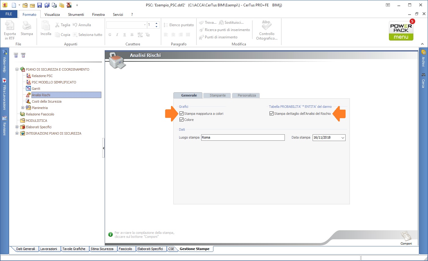 Giuseppe | Giuseppe 2019-09-19 09:55:23 Il messaggio in oggetto indica che sul diagramma di Gantt NON è stata effettuata "l'Analisi della Lavorazione" (per una o più lavorazioni presenti nel documento); infatti, se si accede al diagramma di Gantt si visualizzerà, sotto al diagramma, una sezione in cui saranno elencate le lavorazioni per le quali NON è stata effettuata l'analisi (si visualizzerà il nome delle lavorazioni in grassetto). Se si apre la lavorazione (cliccando sul simbolo "+" a sinistra della lavorazione) si visualizzerà la relativa segnalazione di errore. L'analisi della lavorazione ha due scopi: 1) se effettuata PRIMA di stabilire la durata delle lavorazioni sul diagramma di Gantt, l'analisi della lavorazione darà come risultato "il calcolo automatico della durata della lavorazione" (la barretta della lavorazione sul diagramma di Gantt si allungherà automaticamente - l'operatore dovrà solo stabilire, spostando la barretta sul diagramma, la data di inizio della lavorazione). 2) restituire, sotto al diagramma di Gantt, un grafico (che può essere visualizzato con grafiche diverse) che mostrerà giorno per giorno le ore di rischio (stabilito il PxE) e le presenze in cantiere. Questo grafico ha il fine di aiutare l'operatore nella gestione del coordinamento delle lavorazioni. In realtà, l'analisi della lavorazione è l'unica operazione, NON espressamente richiesta dalla normativa, che CerTus chiede di effettuare all'operatore (infatti, l'analisi della lavorazione può essere anche disabilitata). Se si sceglie di disabilitare l'analisi della lavorazione NON si commette alcun errore, in questo caso il diagramma di Gantt torna ad essere quello che la norma richiede, cioè, una mera rappresentazione grafica temporale delle lavorazioni (quando una lavorazione inizia e quanto dura). Di seguito propongo due filmati IMPORTANTI che mostrano come operare: --> clicca QUI per vedere come effettuare l'analisi della lavorazione --> clicca QUI per vedere cosa ottieni se effettui l'analisi della lavorazione Effettuando l'analisi della lavorazione, nella stampa "Analisi dei rischi" si otterranno le seguenti informazioni: - i dati di dettaglio della tabella "Probabilità x Entità" - il grafico a colori che mostra l’andamento dei rischi sul cantiere Se non si vogliono riportare in stampa le informazioni su proposte, e NON si vuole più visualizzare il messaggio in oggetto, è possibile procedere come di seguito proposto: a) disabilitare il calcolo direttamente dal diagramma di Gantt: selezionando dalla toolbar del diagramma l’opzione “Abilitato” e dal menu “disabilita Analisi Lavorazione”; b) lasciare sul diagramma di Gantt il calcolo attivo ma poi, nella pagina "Gestione Stampe" >> “Analisi Rischi”, >> sezione “Generale” disattivare le opzioni “Stampa mappatura a colori” e “Stampa dettaglio dell’Analisi del Rischio”. Video correlati: --> clicca QUI per vedere utilizzare le varie impostazioni per la stampa dell'analisi dei rischi |