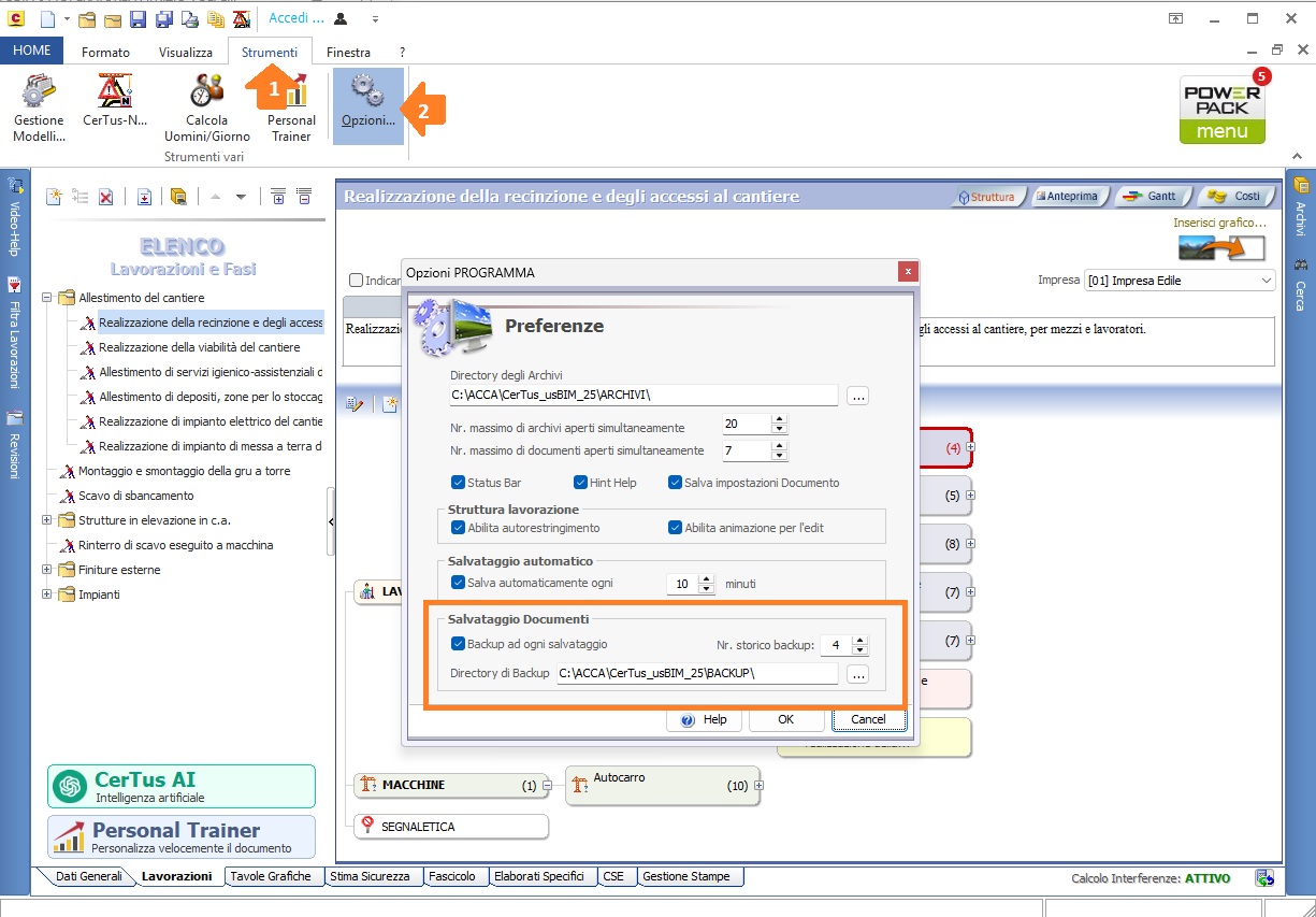 | Messaggio al salvataggio del piano: impossibile creare la copia di backupPatrizio 2026-03-16 15:06:14 Voglio condividere una richiesta di assistenza Richiesta Ho realizzato un PSC, andando a salvarlo, a video compare il messaggio ![]() Cosa comporta questo messaggio? Risposta Ai fini del salvataggio del Piano, il messaggio non comporta alcun problema. Il salvataggio è stato eseguito correttamente. Di contro ci segnala l'impossibilità da parte del software di effettuare una copia di backup del Piano. Il CerTus di default ad ogni salvataggio effettua una copia del Piano. L'utente può gestire le impostazioni per le copie di backup (se fare o meno la copia, indicare la cartella del suo PC al cui interno archiviarla e quante copie conservare) accedendo alle Opzioni del menu Strumenti (clicca QUI per visualzizare una immagine). In questo caso, il piano è stato salvato, ma NON è stato possibile effettuare la sua copia di backup. La causa della mancata realizzazione della copia di backup e quindi del messaggio è insita nel percorso di salvataggio del Piano. Infatti, nel caso specifico, la cartella scelta dal cliente per il salvataggio del Piano è C:\ACCA\CerTus\Backup ossia la medesima cartella al cui interno il CerTus esegue le copie di backup (di default). Un controllo effettuato dal CerTus, verifica che la cartella di backup impostata in (Strumenti/Opzioni/Directory di Backup) NON corrisponda a quella di salvataggio del Piano e nel caso in cui siano la medesima cartella (come nel caso in esame), lo segnala mediante il messaggio su indicato. In questi casi, è sufficiente mediante esplora risorse di Windows spostare in una differente cartella il Piano, differenziandola in questo modo dalla cartella indicata come cartella di backup. Discussioni correlate >>>> Cambiare la cartella di salvataggio delle copie di Backup >>>> Cambiare il numero di copie di Backup >>>> Piano cancellato: come recuperare una copia di backup |