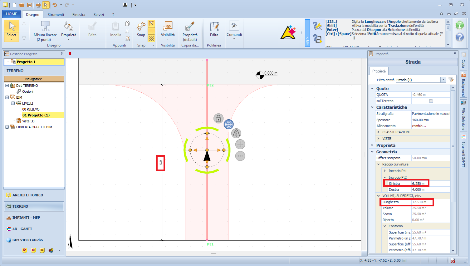 | Come raccordare strade principali e secondarieMauro 2025-12-04 09:47:03 Voglio condividere una richiesta di assistenza Richiesta Ho una strada principale e delle strade che si intersecano, avrei la necessità di raccordarle, come procedere? Risposta Per effettuare il raccordo tra le strade: - Selezionare il tratto di strada da raccordare. - Individuare due punti di riferimento sul tratto. - Selezionare il secondo punto (pt2). - Nella sezione Geometria, accedere alla voce Raggio di curvatura. - Definire il raggio di curvatura per l’incrocio: - lato sinistro - lato destro (i due raggi possono essere diversi, in base alla geometria dell’incrocio e della larghezza della carreggiata). Nota importante: il raggio massimo di curvatura deve essere inferiore alla metà della lunghezza del tratto di strada che si interseca (Rmax<L/2). ![]() Video correlato: Il raccordo tra strade |