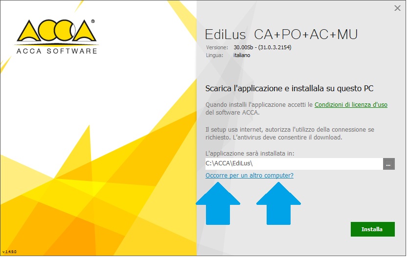 | Installazione EdiLus su computer NON connesso a internetAntonioDL 2015-08-27 10:15:04 Voglio condividere una richiesta di assistenza Richiesta Come devo procedere per installare il programma su un PC privo di connessione internet? Risposta Operazioni da effettuarsi su un PC dotato di connessione internet: 1) scaricare il file installer denominato 'EdiLus_vXXXXy_IT.exe' (XXXX = rappresenta il numero identificativo della versione; y = rappresenta la lettera identificativa della release); 2) eseguire il file 'EdiLus_vXXXXy_IT.exe'; 3) selezionare, nella finestra di setup proposta, il link 'Occorre per un altro computer?' (vedi immagine: Setup_Altro_PC_01); 4) nella successiva finestra è indicato il percorso di archiviazione dei dati scaricati (vedi immagine: Setup_Altro_PC_02); 5) cliccare il bottone Scarica per effettuare il download dei dati; 6) al termine del download spostare sul PC privo di connessione internet [tramite rete interna e/o supporto di memoria (chiave USB, hard-disk esterno, etc.)] i dati scaricati (file: Setup.EXE; cartella: DataFiles); Operazioni da effettuarsi sul PC non connesso a internet: 7) copiare i dati in una cartella di appoggio sul PC; 8) eseguire il file Setup.EXE e procedere con la consueta procedura di installazione. |