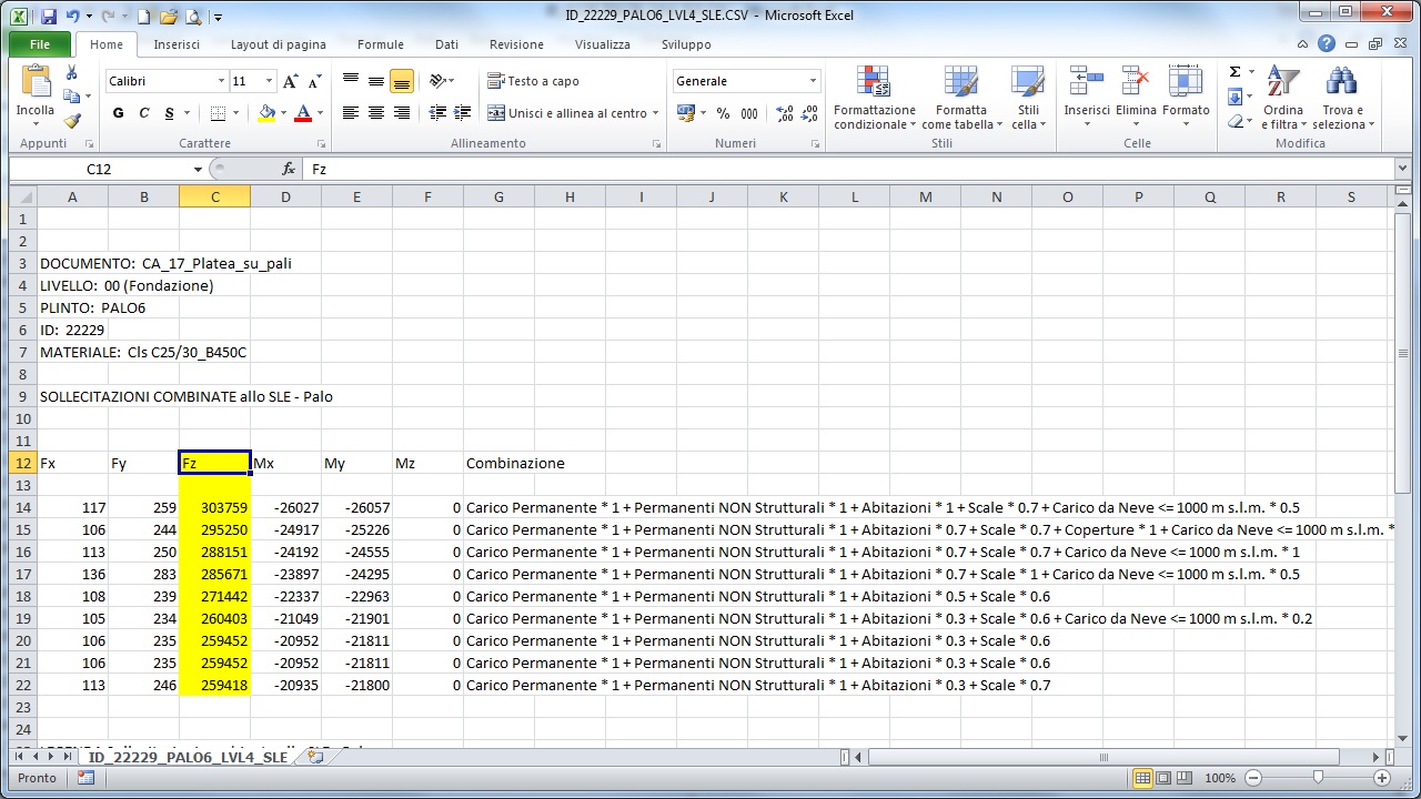 | AntonioDL 2016-11-18 09:03:43 Nel caso di plinti su pali, i dati del file csv delle sollecitazioni combinate fanno riferimento ad un singolo palo, in particolare quello maggiormente sollecitato. |