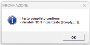 Richiesta: Procedendo alla composizione del Piano di Manutenzione un messaggio mi informa che il testo contiene variabili non inizializzate; alla conferma del messaggio comunque la composizione va a buon fine; qual è il significato di questo messaggio?