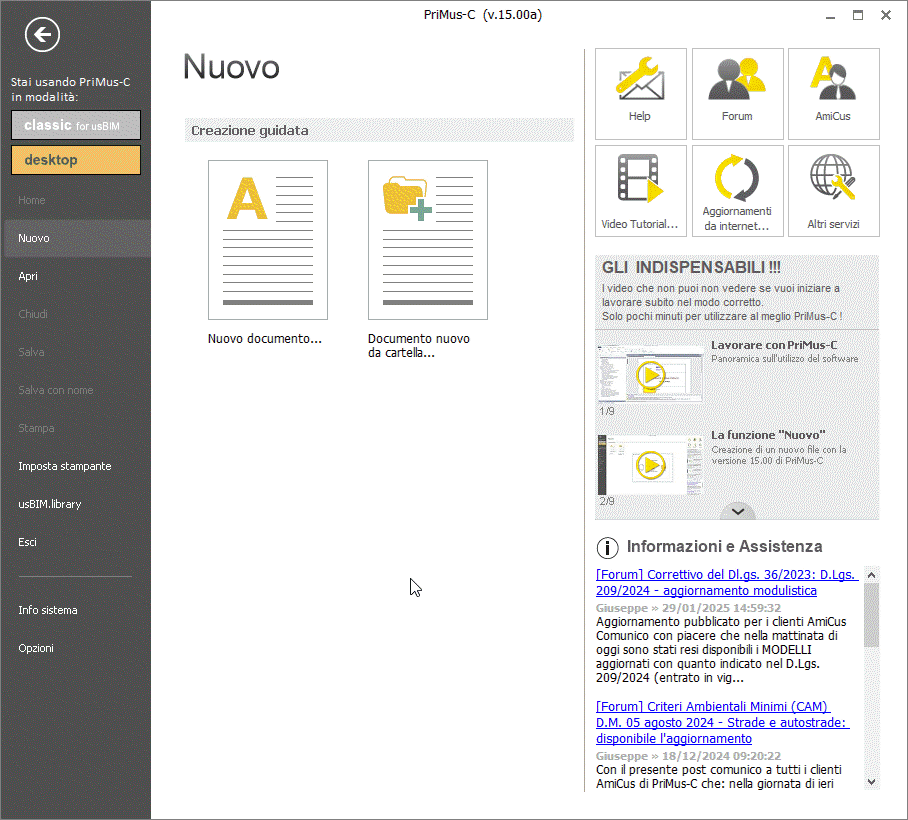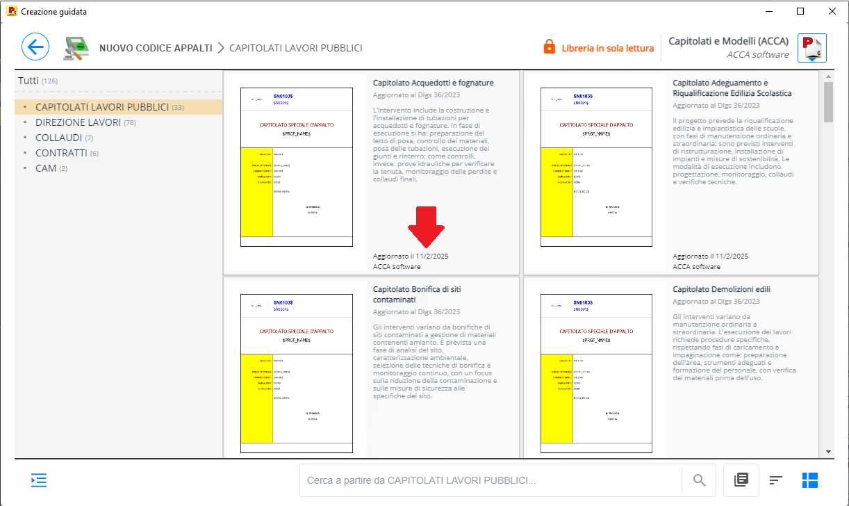 | Giuseppe 2025-01-30 17:30:04 Immagino si stia riferendo agli aggiornamenti dei documenti che ACCA periodicamente mette a disposizione dei clienti AmiCus. Con la nuova versione di PriMus-C i modelli sono nella libreria on-line e quindi si gode di notevoli vantaggi rispetto alla vecchia tecnologia, come ad esempio: - ACCA aggiorna i modelli e il cliente li trova già aggiornati senza eseguire alcuna operazione - il cliente NON ha necessità di scaricare sul suo computer i Modelli in quanto la procedura del programma per la creazione dei documenti preleva le informazioni direttamente dalla rete - sia la libreria di ACCA che quella che crea il cliente sono sempre disponibili da ogni PC (la library è on-line) - etc. Nella GIF che propongo di seguito mostro come creare un Nuovo_Documento utilizzando come modello un Capitolato CAM disponibile nella Library on-line (ovviamente, la procedura si può riperete quante volte si desidera per i vari documenti disponibili) ![]()  |