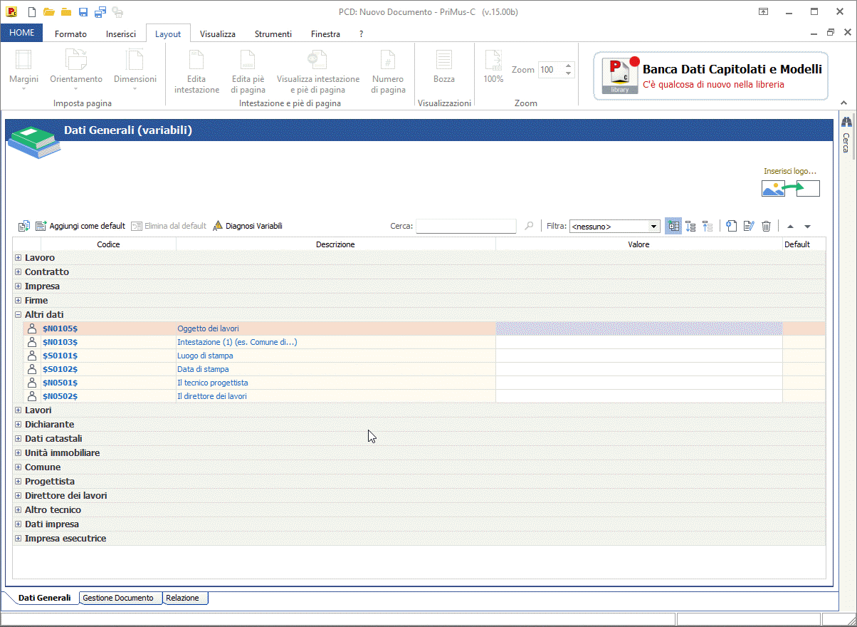 Richiesta Ho visto che a seconda del documento ACCA utilizzato come modello, nella pagina Dati Generali del documento (variabili), sono proposte diverse Categorie; chiedo come si inseriscono le nuove categorie in modo da organizzare le variabili a seconda delle esigenze.