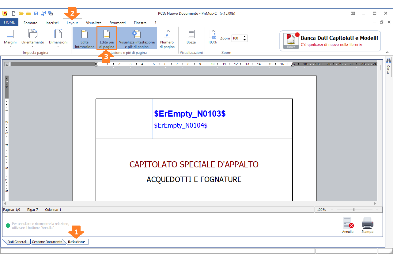 | Intestazione e Piè di Pagina: come personalizzarliGiuseppe 2014-06-17 10:41:14 Vorrei condividere una richiesta di assistenza. RICHIESTA Come posso inserire l'Intestazione e il Piè di Pagina nella Relazione? RISPOSTA Per inserire l'Intestazione e/o il Piè di Pagina nella Relazione occorre utilizzare le apposite funzionalità presenti nel menu "Visualizza/Modifica Intestazione e Piè di Pagina". --> clicca QUI per vedere come inserire l'Intestazione e il Piè di Pagina nella versione 14.00 di PriMus-C |
