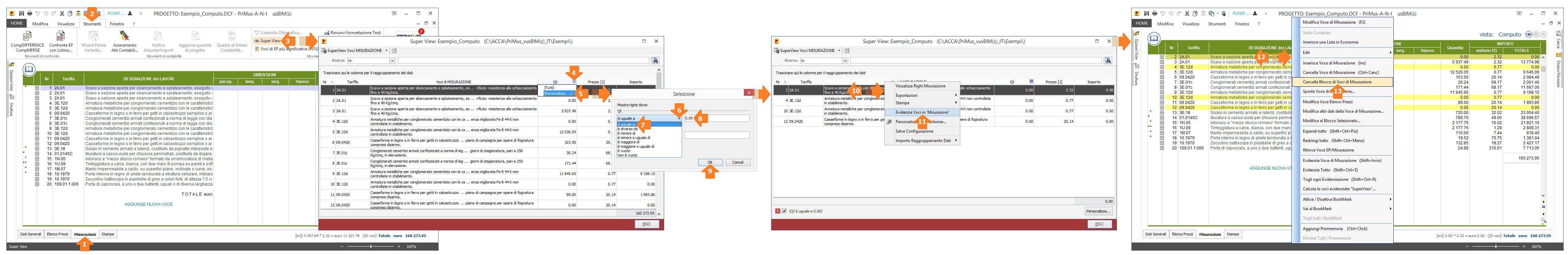Felice | Felice 2021-04-09 14:49:19 Per individuare le voci con importo '0.00' (zero) nell'editor Misurazioni del documento valuti la possibilità di procedere mediante le funzionalità presenti nel Super View --> vedi immagine esplicativa Nota - dal Super View, al contrario, sarà possibile individuare anche solo le voci che hanno importo 'maggiore a 0.00'. In tal caso, quindi, sarà possibile eseguire la stampa del computo riferito al solo blocco di voci evidenziato --> vedi immagine esplicativa |