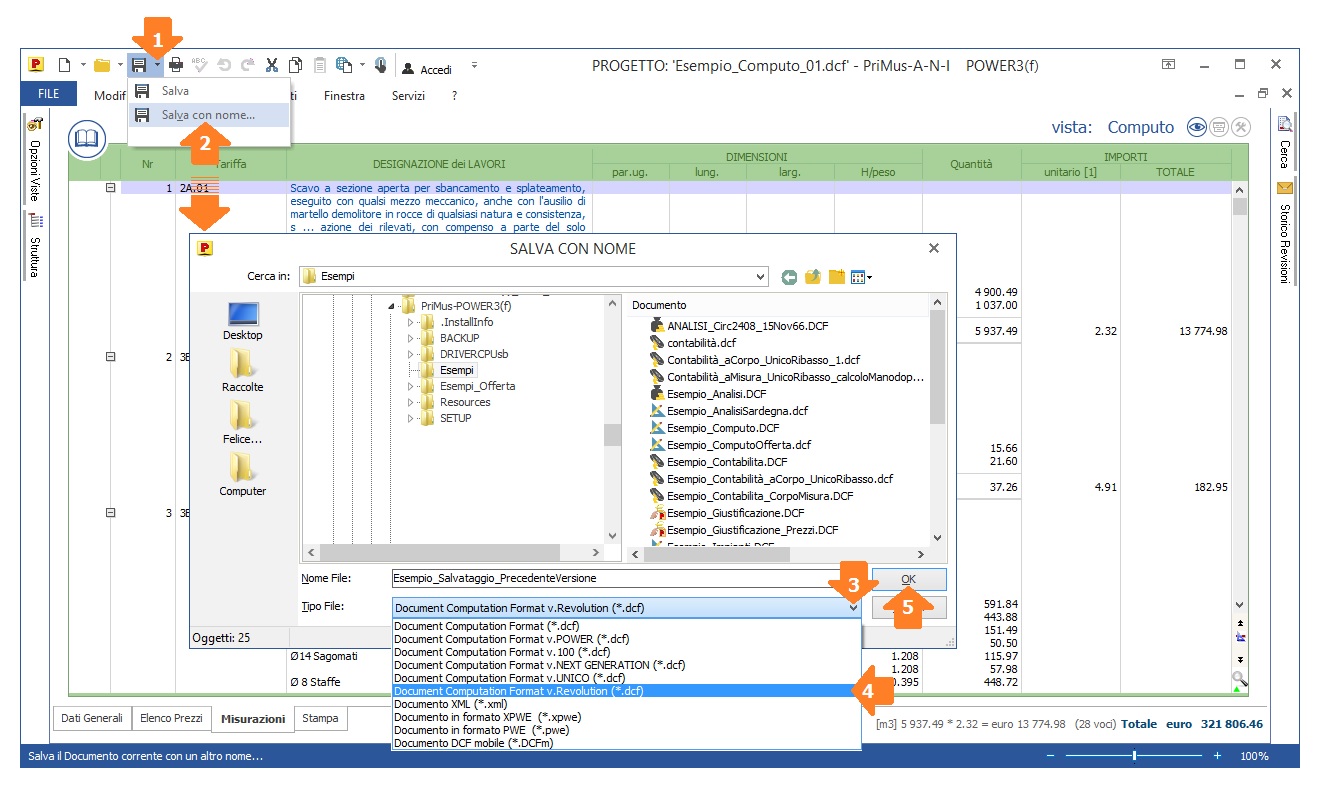 Solitamente, il cambio di release/versione corrisponde anche ad implementazioni di campi, opzioni e funzioni che le precedenti release/versioni del software non prevedevano e, quindi, non possono gestire. Pertanto, quando si salva un documento nel formato di una precedente versione, il software informa sugli aspetti che potrebbero non essere visualizzati e/o gestiti con la vecchia versione di PriMus. Tuttavia, confermando il messaggio, il file viene comunque salvato nel formato della precedente versione. Quando il file in oggetto viene aperto con la vecchia versione, il software informa che il documento è stato prodotto con una release/versione superiore ed invita a verificare la disponibilità di aggiornamenti su internet; cliccando NO, il messaggio si chiude e il documento viene comunque aperto. In tal caso, il documento aperto potrà essere gestito con i campi, le opzioni e le funzioni previste dalla vecchia versione. P.S.: nel suo caso, il valore dell'incidenza percentuale della sicurezza (indicato per ciascuna voce di elenco prezzi nel campo 'Incidenza Sicurezza' nella pagina 'Avanzate' della finestra 'Dettaglio...' dell'editor Elenco Prezzi) sarà presente anche nel documento aperto e gestito con una delle precedenti versioni previste dalla finestra 'SALVA CON NOME' di PriMus POWER3. |