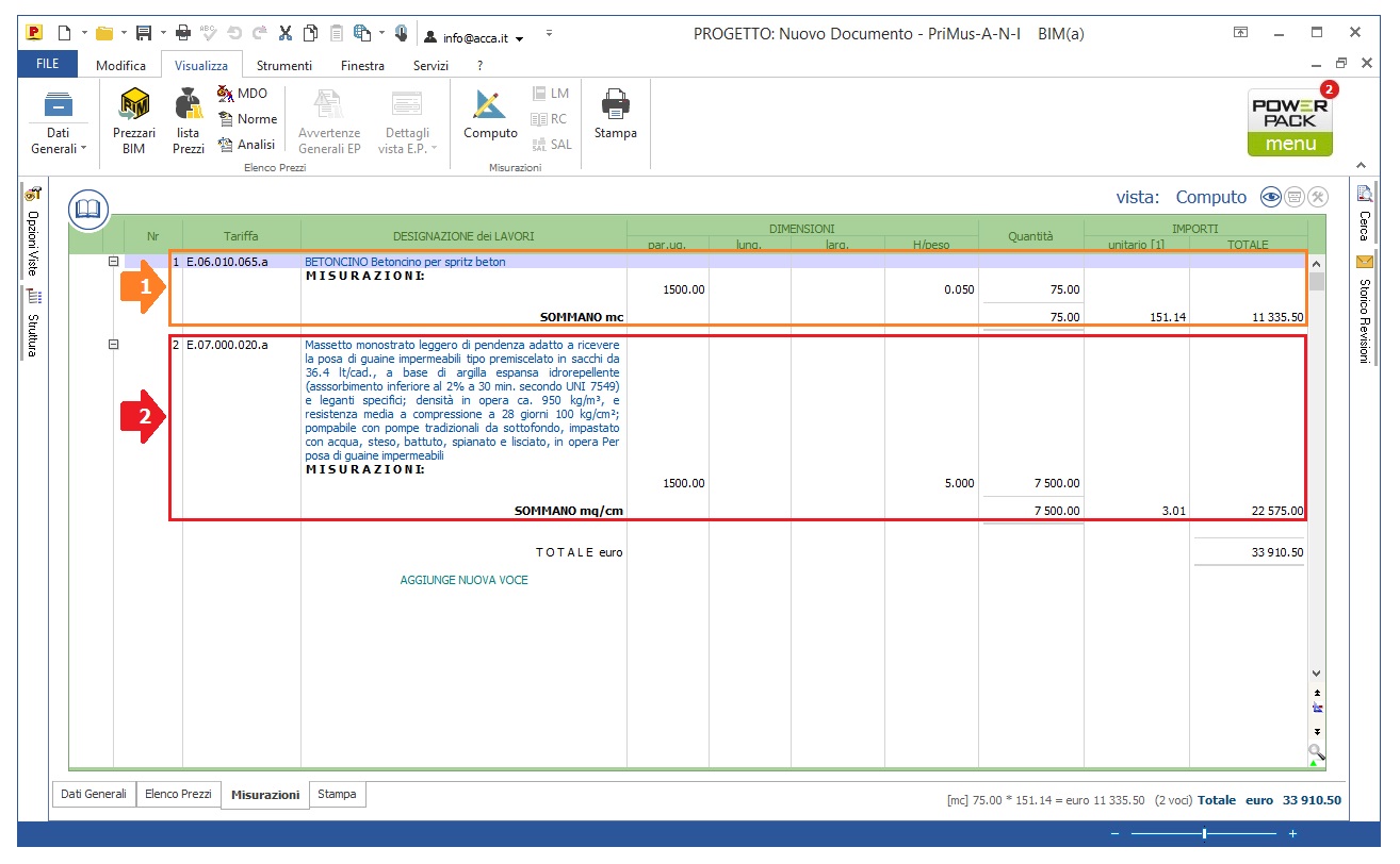 | Quale unità di misura utilizzare nell'inserimento delle misure per le voci di computoDimitri 2017-10-30 17:30:11 Buonasera, quando inserisco i dati nelle colonne delle misurazioni del programma, non so se mettere il valore in cm o in metri. Esempio: parti uguali 1500 (per indicare 1500 mq) h/Peso (dovrei mettere 5 cm) devo scrivere 5 o 0,05? |