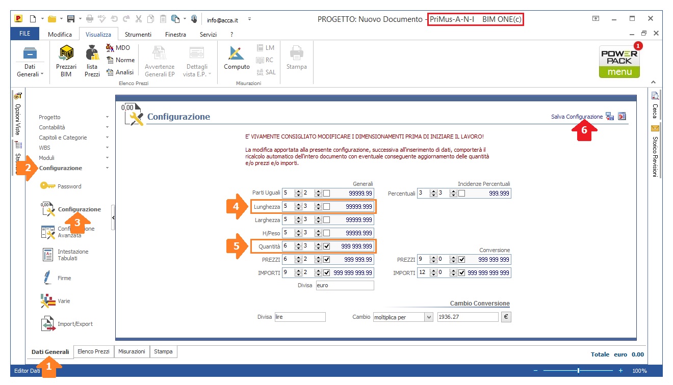 | Felice 2019-10-31 10:36:10 Il file Excel ottenuto dall'esportazione di un documento PriMus quando viene reimportato si basa sulla configurazione di default del documento che trova impostata in quel momento nel software. Pertanto, per ottenere quanto richiesto, valuti la possibilità di procedere nel seguente modo (procedura eseguibile con le sole versioni commerciali del software PriMus e PriMus-P): 1) creare un nuovo documento; 2) personalizzare la configurazione dei campi numeri in base alle proprie esigenze; 3) selezionare l'opzione 'Salva Configurazione (Default)' affinché il software acquisisca le personalizzazioni eseguite come il default da proporre ai nuovi documenti che si andranno a generare da quel momento in poi --> vedi immagine esplicativa 4) chiudere il documento senza salvare; 5) eseguire l'importazione del file Excel. PriMus-DCF non prevede la funzione 'Salva configurazione (default)' Nota - PriMus-DCF è la versione gratuita del software che prevede minime funzioni rispetto alle versioni commerciali PriMus e PriMus-P La invito a scaricare gratuitamente la versione trial del software PriMus al fine di provare la funzione/procedura indicata --> scarica PriMus in prova gratuita per 30 giorni Nota - nel corso dei 30 giorni può anche usufruire del servizio assistenza e, se interessato, delle vantaggiosissime offerte commerciali attive in questo periodo. Per maggiori dettagli, chiami il numero 0827/69504 (servizio attivo dal lunedì al venerdì, negli orari 09:00-13:00 e 15:00-19:00) La soluzione migliore è sempre quella di far veicolare direttamente i file nel formato PriMus (formato '.dcf') e NON file nei formati Excel... In questi casi, infatti, la configurazione del documento viene garantita dal formato originario '.dcf'! |