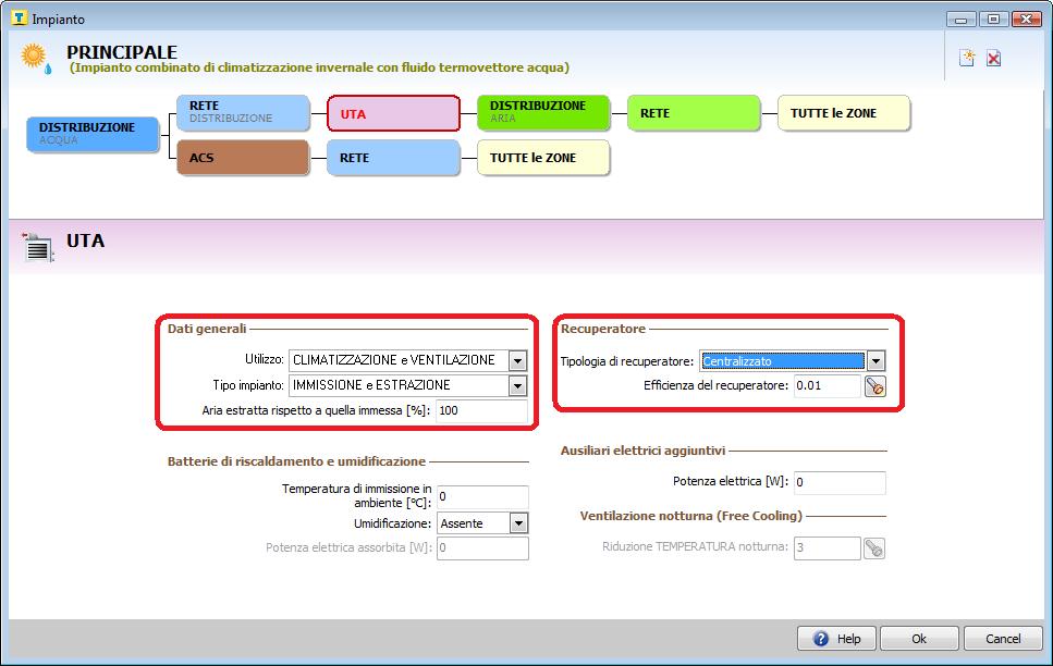 | Antonio 2015-09-07 09:29:36 Nella pagina 'Ventilazione' della 'Struttura' della Zona certamente devono essere definiti i dati della sezione 'Ventilazione NATURALE e/o di RIFERIMENTO'. Ciò insieme anche ai dati dell'impianto VMC consente il regolare calcolo di energia. Per avere un'opportuna valutazione anche per il Calcolo Potenza può definire in modo esatta anche i ricambi d'aria effettivi che saranno garantiti. |