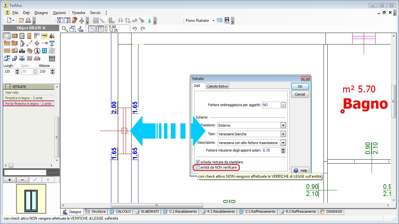 Antonio | Antonio 2017-02-15 15:52:17 Per escludere gli infissi deve attivare, nel dialog dei Dati estesi, l'opzione 'entità da NON verificare' (vedi immagine). |
