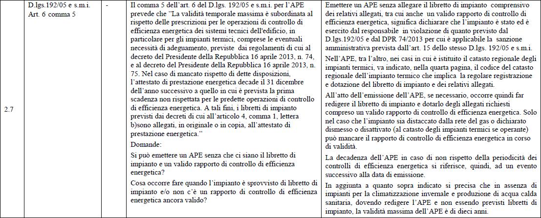 | Antonio 2017-03-30 10:07:33 Escludendo l'impianto di ACS con boiler elettrico, per il riscaldamento il tipo di macchina descritta, dovrebbe essere soggetta agli obblighi di dotazione del Libretto di Impianto (basterebbe vedere quanto previsto alla scheda 4.1 del Libretto di Impianto Piemonte), potrebbe in ogni caso sentire anche il parere dei tecnici del C.I.T.. Chiaramente in assenza di Libretto, etc. (ed al contempo di obblighi in tal senso) la validità dell'APE sarebbe ridotta. Ad ulteriore chiarimento può consultare anche la risposta MiSE alla FAQ n. 2.7 della serie 'Agosto 2016'. |