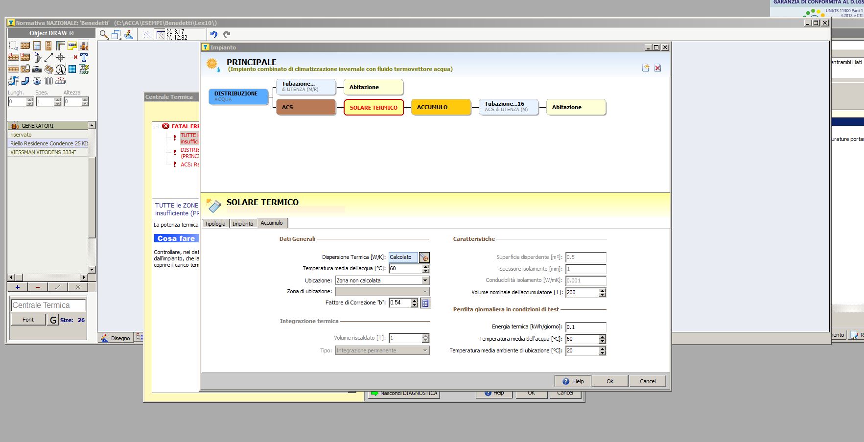 peritox | Caldaia + bollitore + accumuloperitox 2015-02-23 11:45:40 In caso di impianto costituito da caldaia + bollitore doppia serpentina + solare termico circolazione forzata, vorrei sapere se l'opzione giusta nella definizione dell'impianto è quella di selezionare solare termico + accumulo sul sanitario. Chiedo questo perchè in tal caso mi trovo ad indicare i dati dell'accumulo sia nella relativa sezione del solare termico che in quella dell'accumolo. Allego un'immagine per maggior chiarezza. Grazie 192085_1424688285_solare_accumulo.jpg |