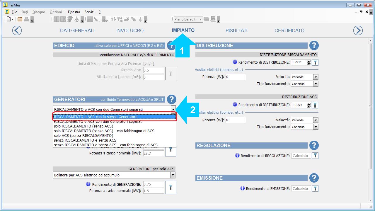 Antonio | Antonio 2015-04-29 10:03:27 In tale condizione l'input semplificato CERTIFICAZIONE (APE) "VELOCE" non può essere utilizzato. Bisogna utilizzare la procedura con input grafico CERTIFICAZIONE (APE) e definire poi in Centrale Termica come i due generatori funzionino (Serie o Parallelo). |