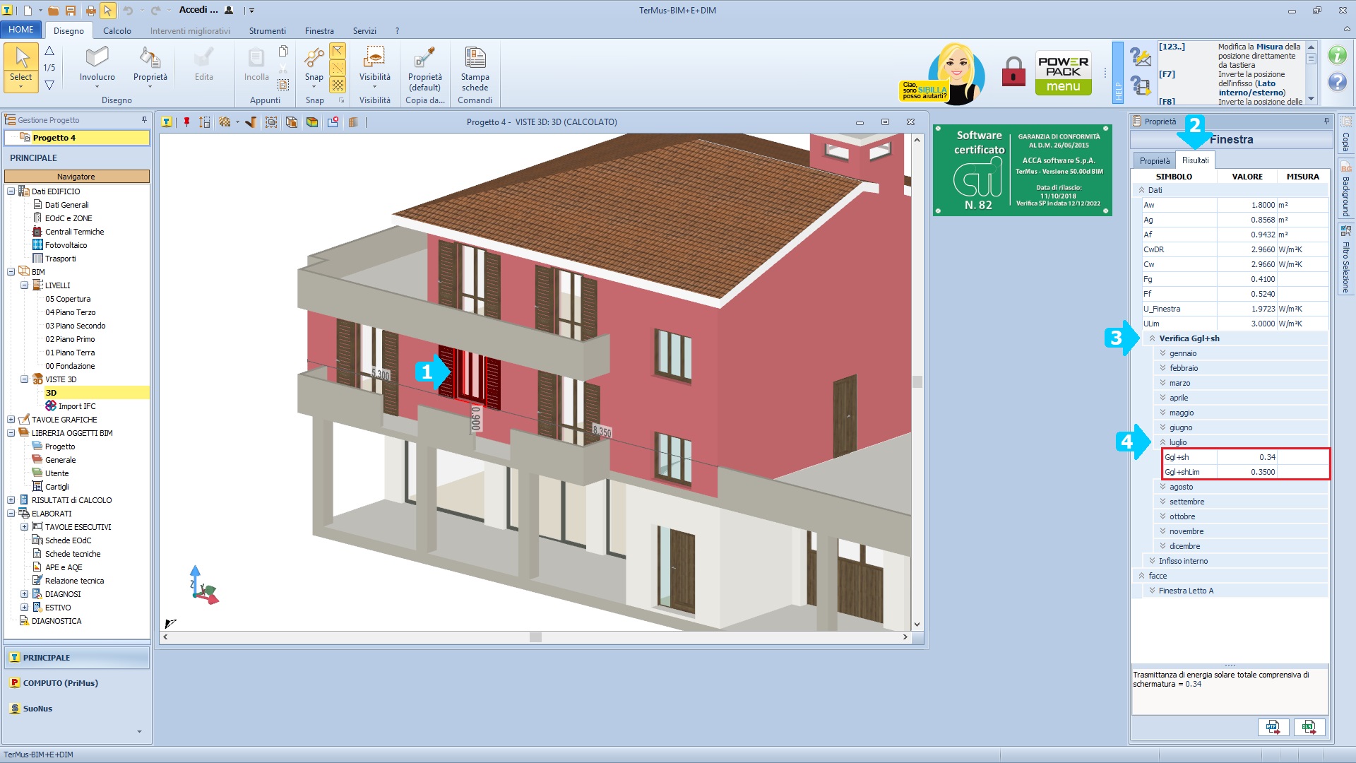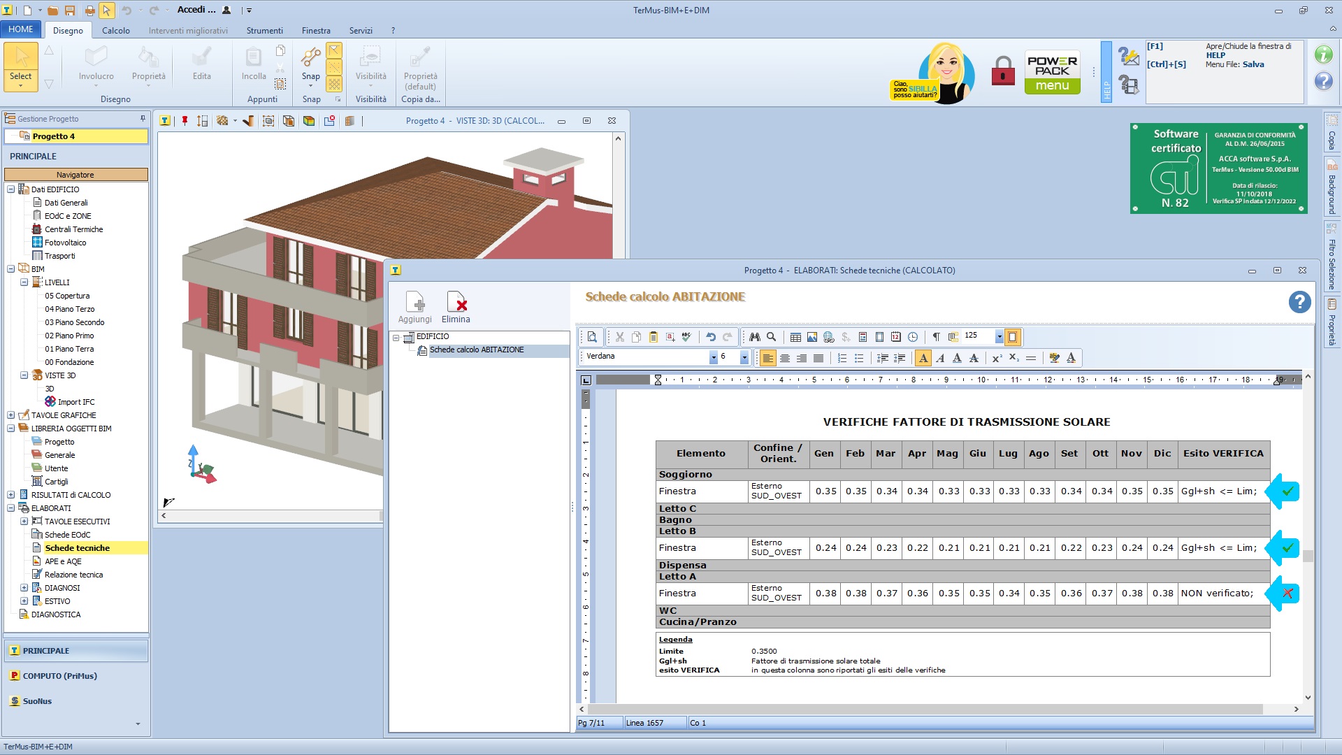 | Fattore di Trasmissione Solare totaleAntonio 2024-08-27 17:43:26 Voglio condividere una richiesta di assistenza Richiesta: Buonasera, visti gli obblighi di legge a riguardo del fattore di trasmissione solare totale (< 0.35), nei casi in cui bisogna rispettarlo il software lo segnala ed eventualmente poi dove si ha evidenzia delle verifiche? Grazie Risposta: Il programma esegue le verifiche di legge nei casi previsti dal Decreto 'requisiti minimi' cogente (tenendo anche conto delle FAQ del MiSE) ed il mancato rispetto delle stesse è evidenziato mediante specifici messaggi del tipo Fatal Error [9007] in Diagnostica (raggruppamento 'VERIFICHE DI LEGGE'). Il valore proprio del 'fattore solare' dei soli Vetri può essere digitato nella struttura degli stessi (vedi immagine) acquisendolo dalla scheda tecnica del Produttore del componente vetrato. Nel caso si opti per componenti vetrati tabellati in norma, il valore del fattore solare sarà anch'esso quello tabellato nei prospetti di norma in funzione della tipologia di componente vetrato scelto. E' da tener conto che sul valore del fattore di trasmissione solare totale incidono anche gli Schermi quando adottati sulle Vetrate. Riguardo invece gli esiti... A Calcolo Completo eseguito (questa tipologia di calcolo esegue anche le Verifiche di Legge) è possibile selezionare la Vetrata direttamente nel modello e nel toolbox Risultati accedere subito al raggruppamento denominato Verifica Ggl+sh nel quale, per ogni mese, è subito disponibile il valore calcolato ed il relativo valore limite (vedi immagine). Gli esiti delle verifiche del valore del fattore di trasmissione solare totale sono puntualmente riportate, finestra per finestra, nella Scheda di Calcolo dell'EOdC alla sezione 'Verifica Fattore di Trasmissione Solare' (vedi immagine). Discussioni correlate: Fatal Error [9007] La superficie vetrata presenta un fattore solare maggiore del limite |